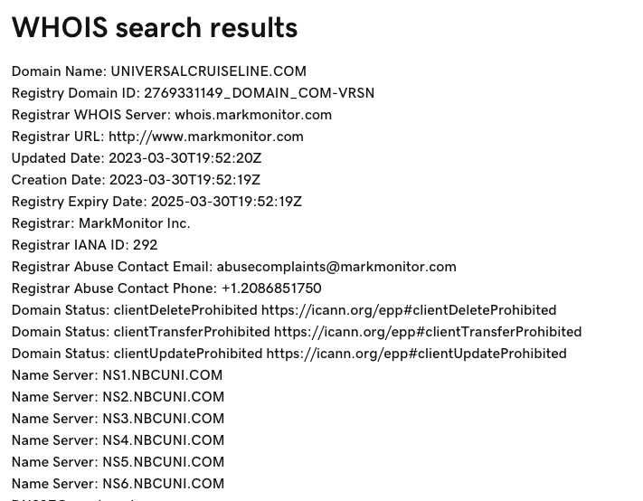 On March 30, 2023, universalcruiseline.com was registered by NBCUniversal, a media company which happens to control a major theme park portfolio with destination across the globe.